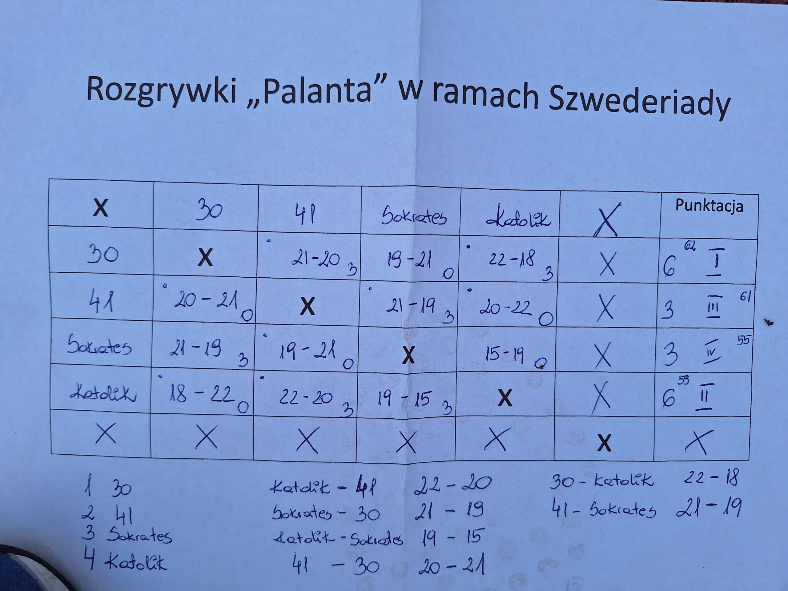 Wyniki turnieju Palanta: