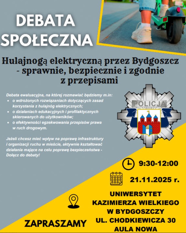 „Hulajnogą elektryczną przez Bydgoszcz – sprawnie, bezpiecznie i zgodnie z przepisami” 📅 Data: 21 listopada 2025 r.