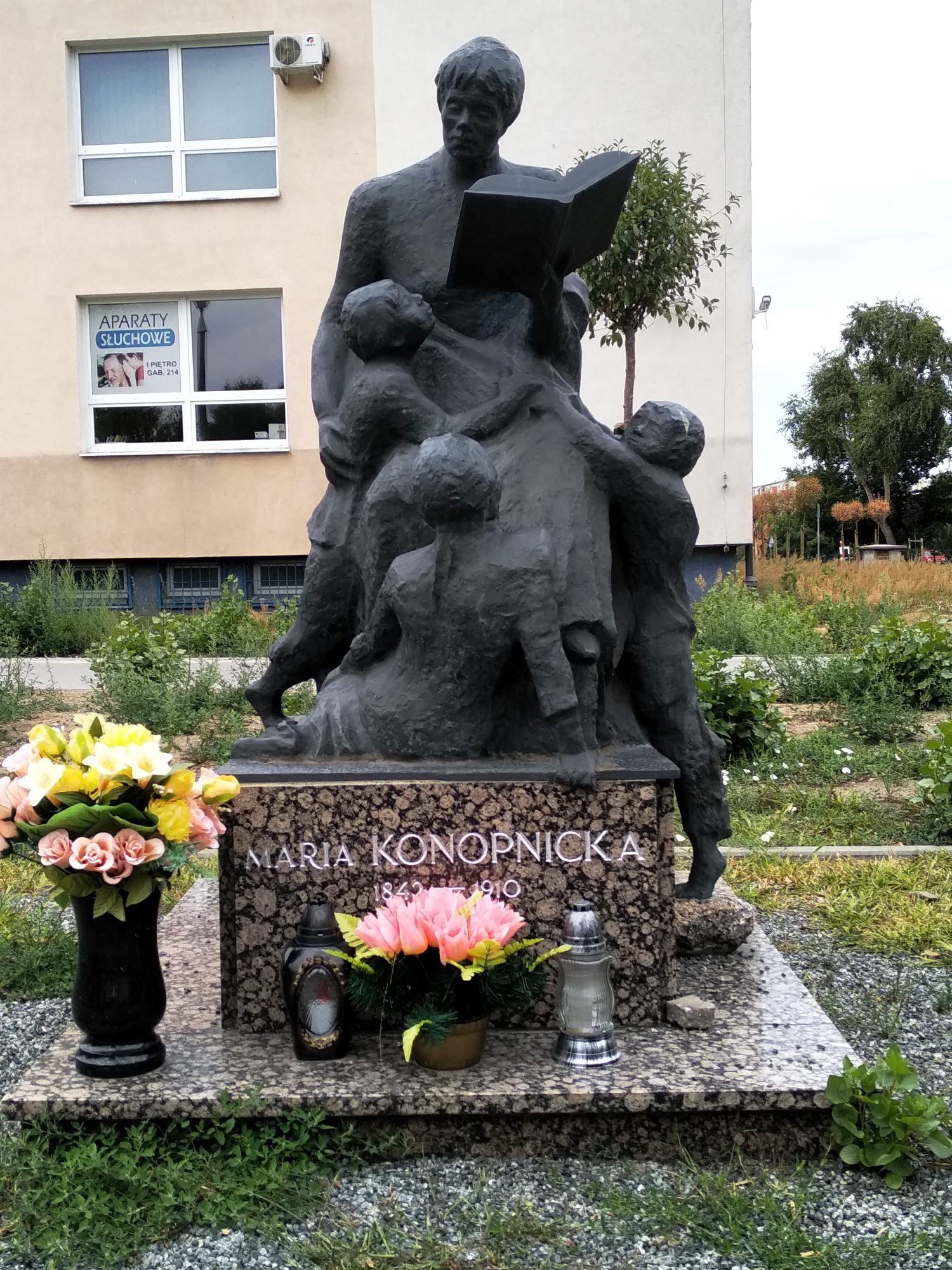 Pomnik Marii Konopnickiej autorstwa Pani Krystyny Panasik. Rzeźbę postawiono w 1993 roku.