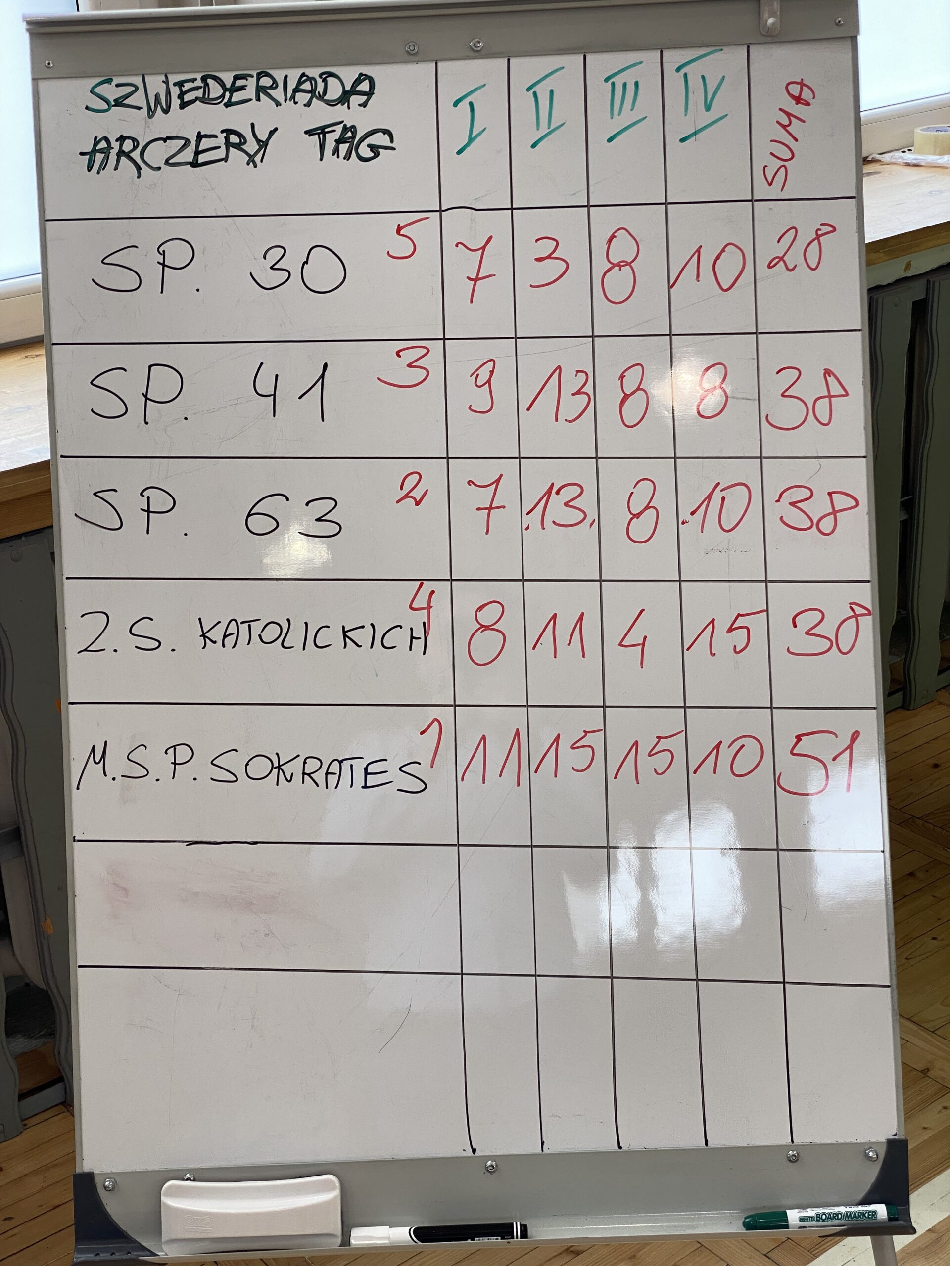 w ramach sportowego cyklu Szwederiady odbyły się zawody w łucznictwie. Oczywiście wszystko było bezpieczne a zawody poprzedził instruktarz oraz próbne strzały. W konkurencji startowały dzieci z klas piątych i szóstych, drużyny liczyły ośmiu zawodników w tym dwóch rezerwowych. Przewidziano cztery serie, w których zawodnicy oddawali dwa strzały. W zależności od celności, jednorazowo można było zdobyć od 1 do 3 punktów. Sam środek i najmniejszy otwór to 3 punkty i takich trafień było 10!!! Rywalizacja była bardzo zacięta, szczególnie o miejsca od drugiego do czwartego. Potrzebowaliśmy dwóch dodatkowych serii strzałów aby ustalić ostateczną kolejność. W turnieju zwyciężyła Międzynarodowa Szkoła Sokrates, która wysunęła się na prowadzenie po pierwszej serii strzałów. Okazało się, że gospodarze turnieju nie oddali już prowadzenia do końca rywalizacji. Dyscyplina łucznicza gościła pierwszy raz na Szwederiadzie, ale kto wie, może to nie był ostatni raz. Turniej był emocjonujący i sprzyjał integracji. Dzieci mogły zapoznać się z podstawami techniki łucznictwa i przy tym dobrze się bawić. Gratulujemy opiekunom i uczestnikom. Dziękujemy Międzynarodowej Szkole Sokrates za gościnę.