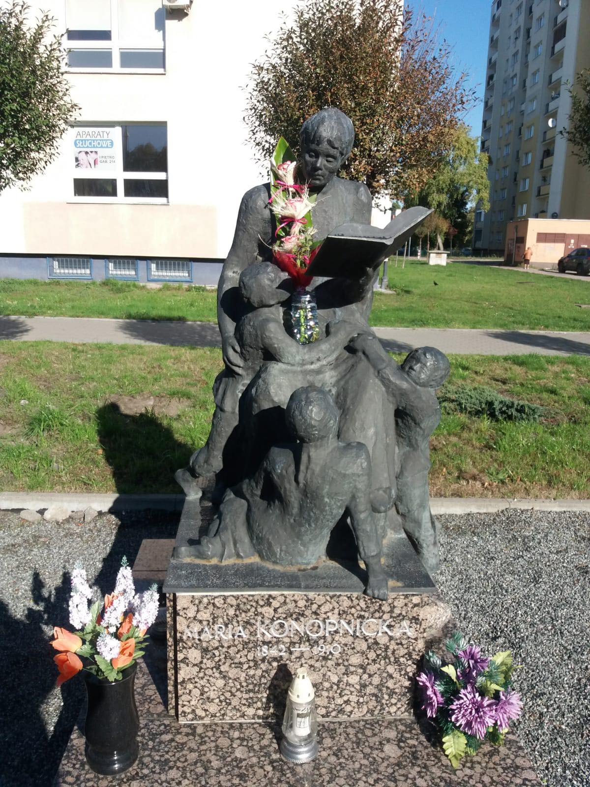 W trakcie IX „Dni Szwederowa,” 25 września 1993 roku w sobotę o godzinie 12 odsłonięto pomnik Marii Konopnickiej. Zdecydowano aby został usytuowany na skwerze przy Przychodni Rejonowej Konopnicka 26. Była to inicjatywa Koła Miłośników Szwederowa, która otrzymała formalne wsparcie Towarzystwa Miłośników Miasta Bydgoszczy. Całe przedsięwzięcie nie okazałoby się sukcesem bez ofiarności firm, instytucji, szkół oraz osób prywatnych. Zbieraniem środków zajął się Społeczny Komitet Budowy. Bydgoska rzeźbiarka Pani Krystyna Panasik zaprojektowała i wykonała rzeźbę. Ciekawostką jest, że pomnik odsłonięto w niedokończonej formie z powodu braku wystarczających środków finansowych. Spacerując obok pomnika można sobie zadać pytanie dlaczego pomnik Marii Konopnickiej powstał na Szwederowie. Skąd pomysł aby upamiętnić właśnie tę pisarkę. Odpowiedź odnajdujemy w archiwalnej gazetce „Szwederowo” jako dodatek do Dziennika Wieczornego z 1993 roku. W jednym z artykułów Komitet Budowy Pomnika Marii Konopnickiej odpowiada na pytanie. Obecnie pomnikiem opiekuje się Rada Osiedla Szwederowo, która między innymi organizuje spotkania dla dzieci przypominające twórczość pisarki.