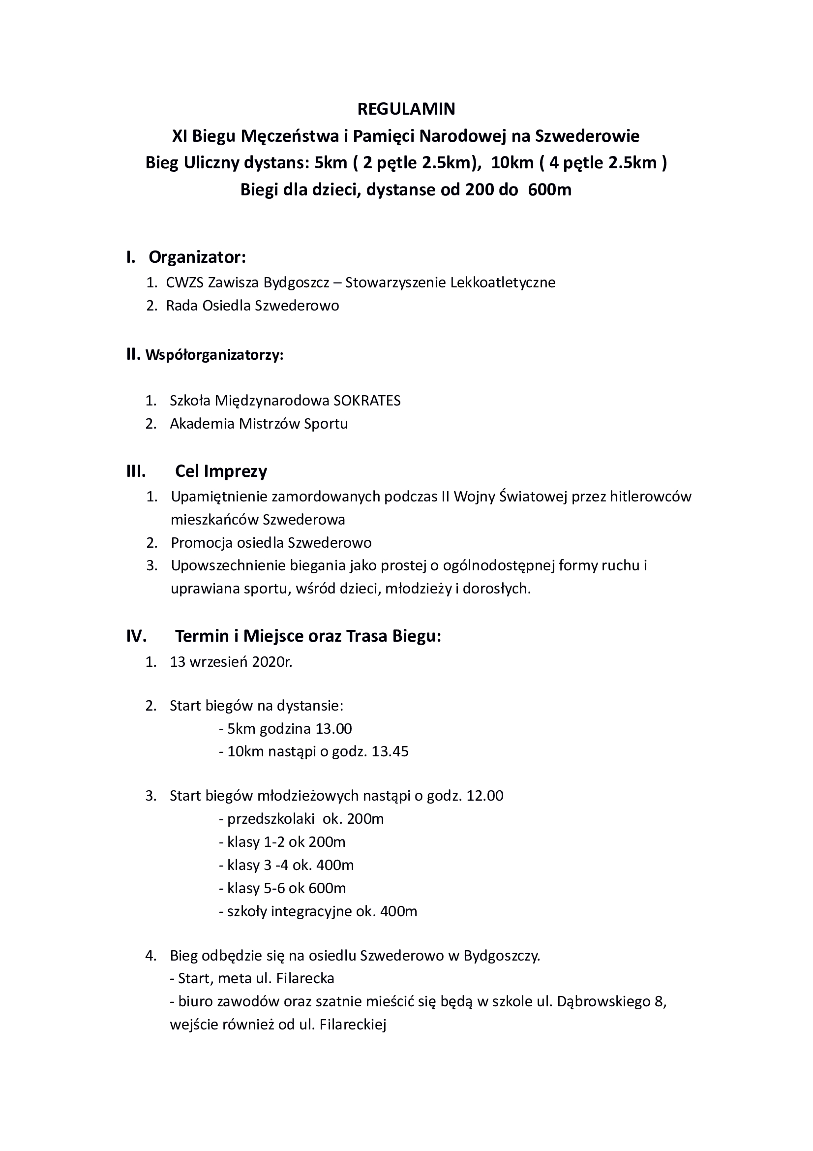 W tym roku odbędzie się kolejna edycja Biegu Męczeństwa i Pamięci Narodowej na Szwederowie. Podobnie jak to było w ostatnich latach i tym razem Rada Osiedla Szwederowo będzie współorganizatorem imprezy. Będzie to już 11 edycja naszego osiedlowego sportowego wydarzenia. Data do zapamiętania: 13 wrzesień 2020.